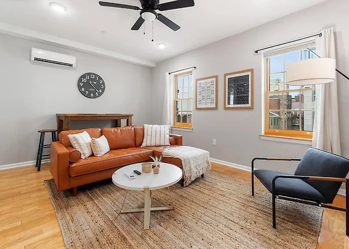 Diese Unterkunft bietet seinen Gästen den Komfort von Selbstversorgungseinrichtungen, einschließlich von einem Wasserkocher, einem Kühlschrank und einem Herd. Der Flughafen Philadelphia International befindet sich 19 Fahrminuten entfernt, und die Bushaltestelle Walnut St & 18th St liegt etwa 5 Fußminuten von diesen Unterkünften entfernt.
